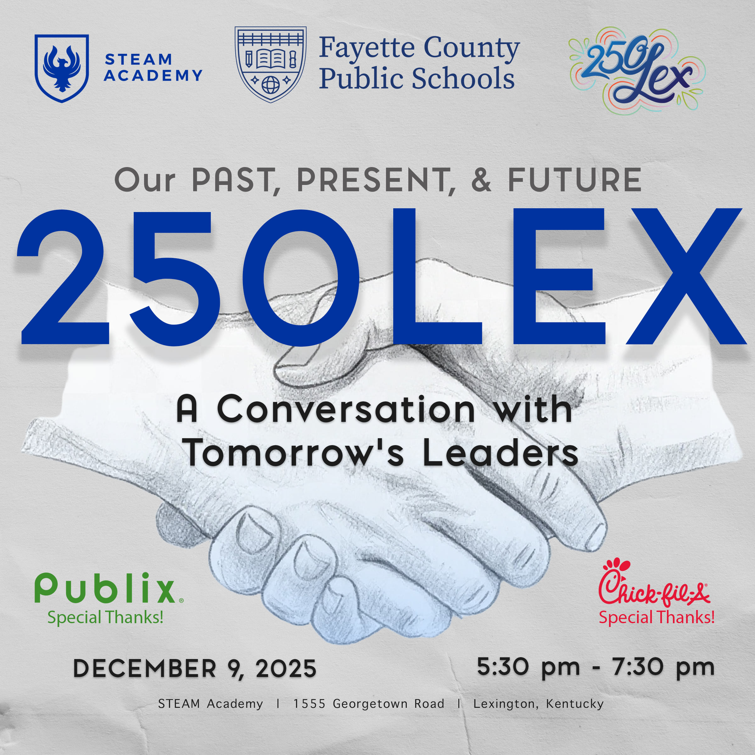 Students from STEAM Academy, who represent every zip code in the city, will be presenting research projects that specifically look at the qualities that make a community strong and future-ready: health and vitality, local leadership, environmental best practices, civil engineering and infrastructure, and social well-being. Hear Mayor Linda Gorton’s reflection on this year’s celebration, along with civic and community leaders, as we pause and consider the possibilities of Lexington’s future. Students will showcase their research findings and have an opportunity to ask questions to help shape their understanding. Chick-fil-A will be provided to the first 400 guests, along with refreshments, live orchestral music, and exhibits that will spark imagination and conversation. There is no fee to attend the event.